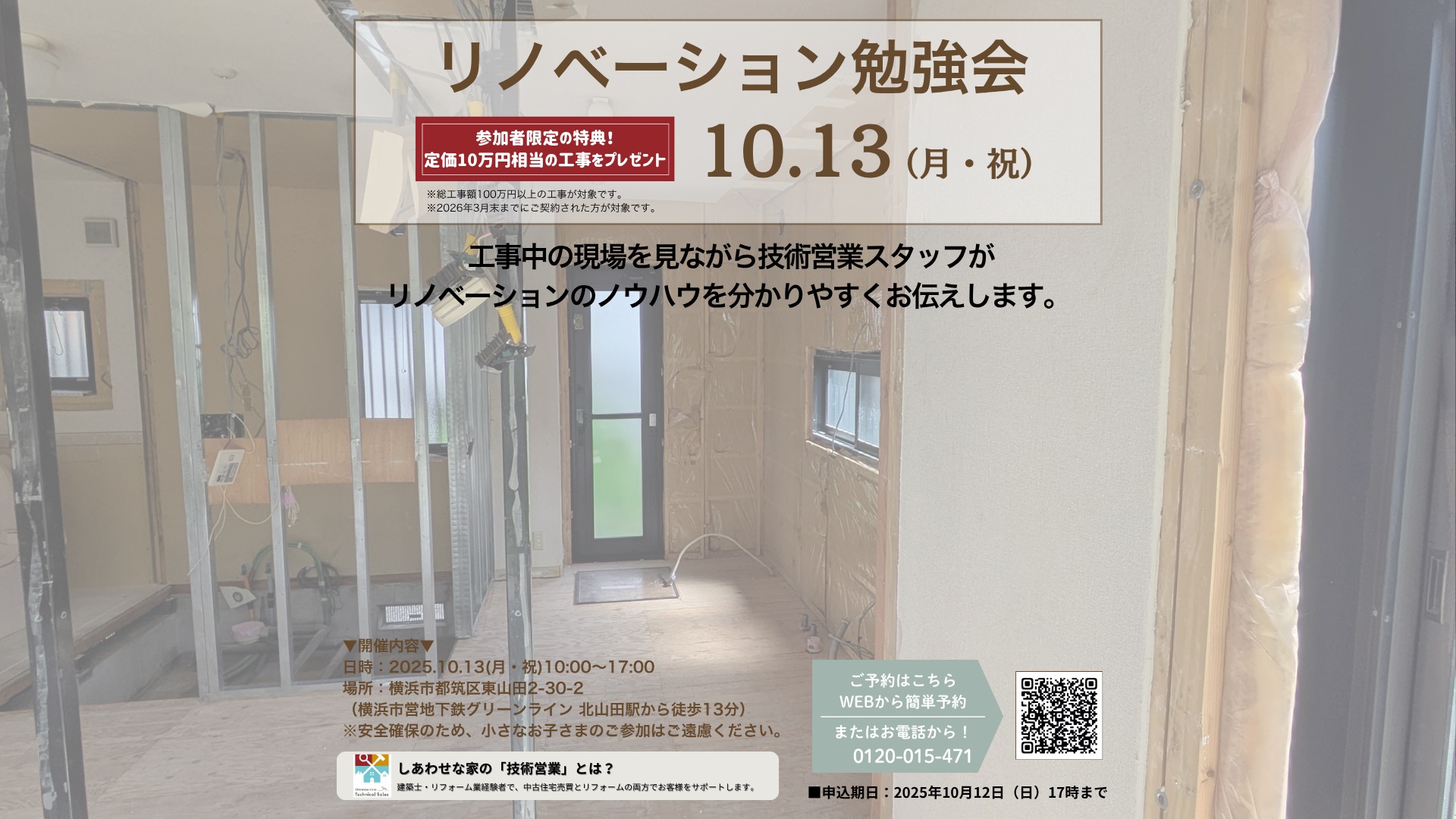 このたび、戸建リノベーション現場で行う勉強会を開催いたします。