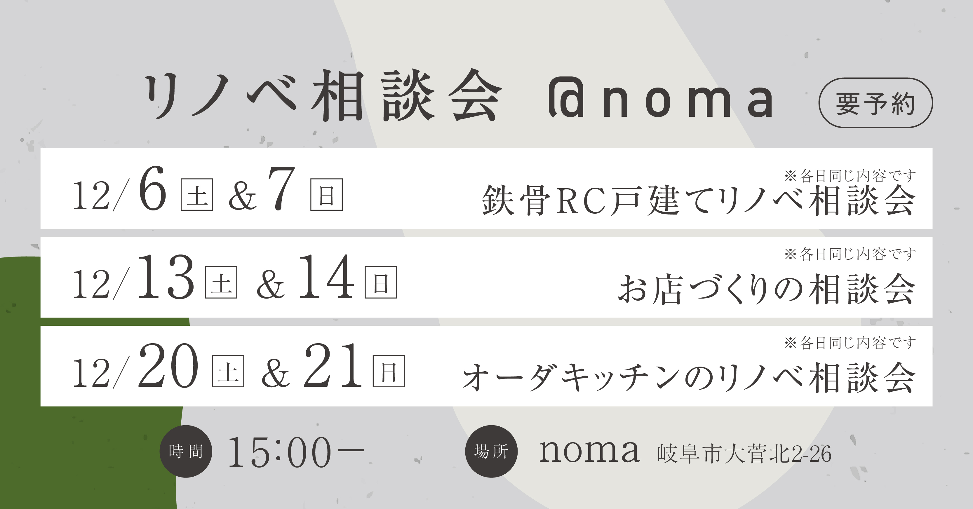開催場所: noma ( 岐阜市大菅北2-26 )