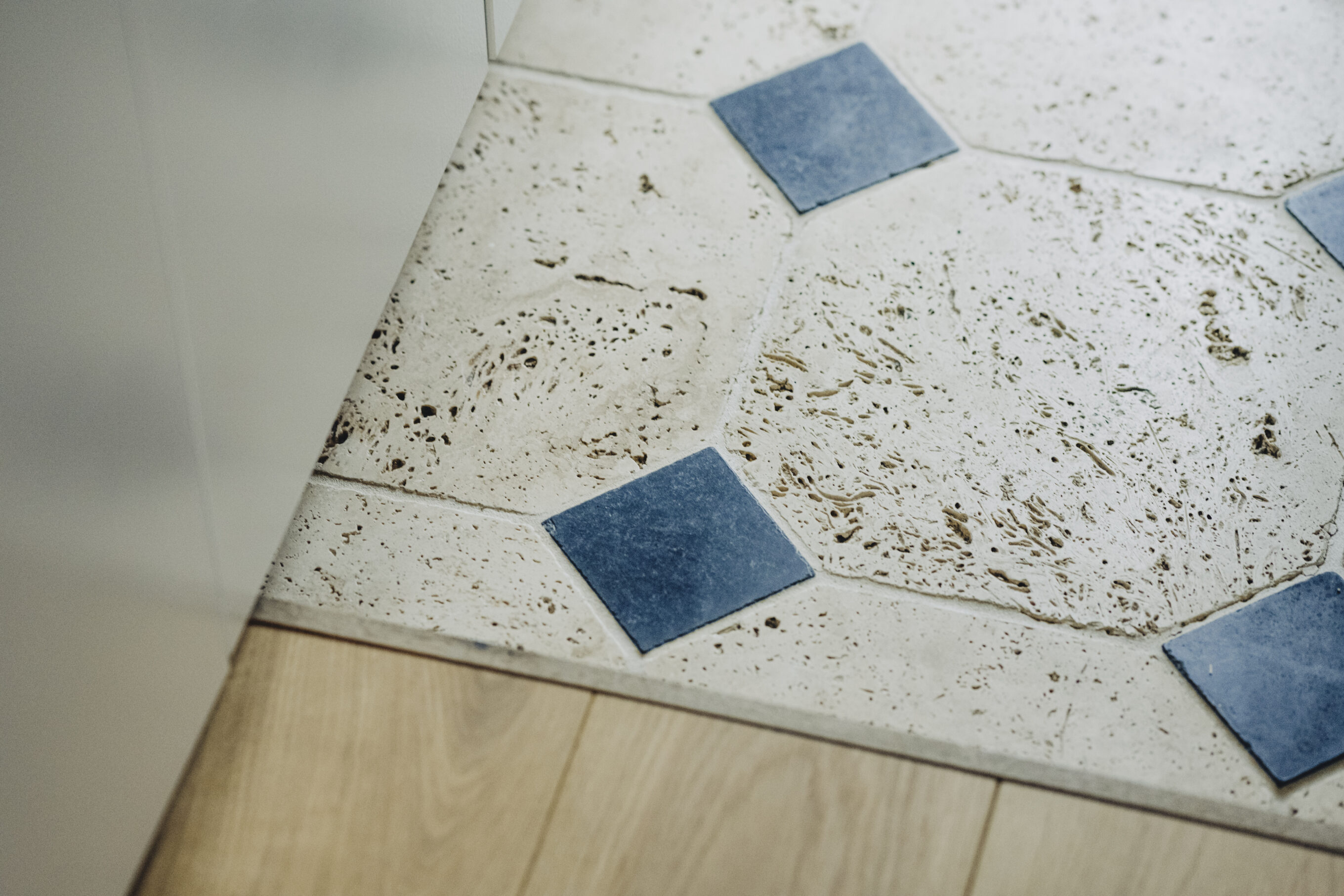 アンティークのタイルや照明、陶器のドアノブ、真鍮のつまみや見切り。