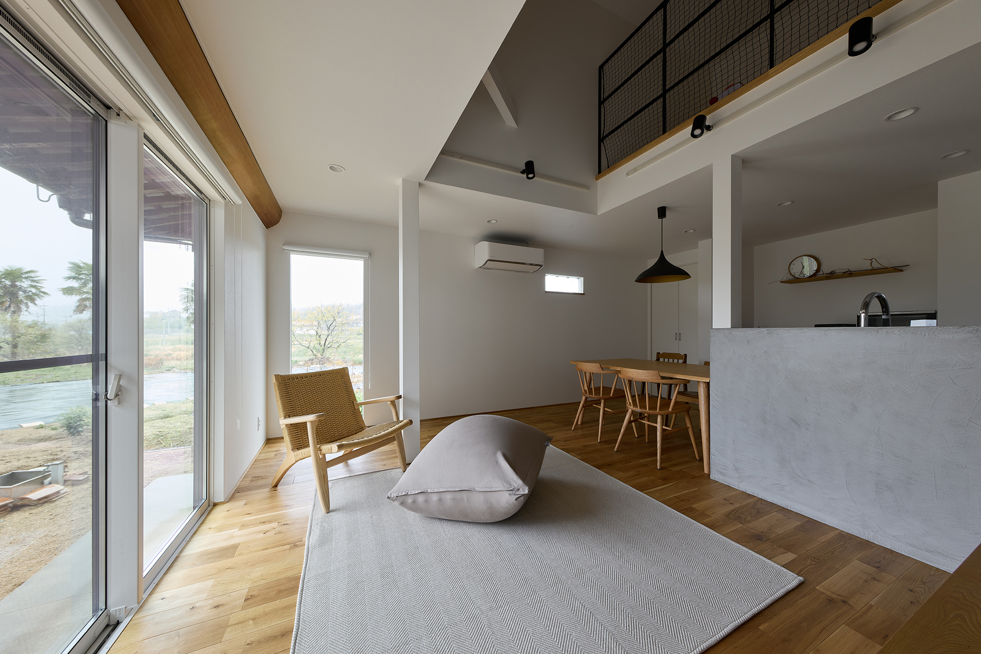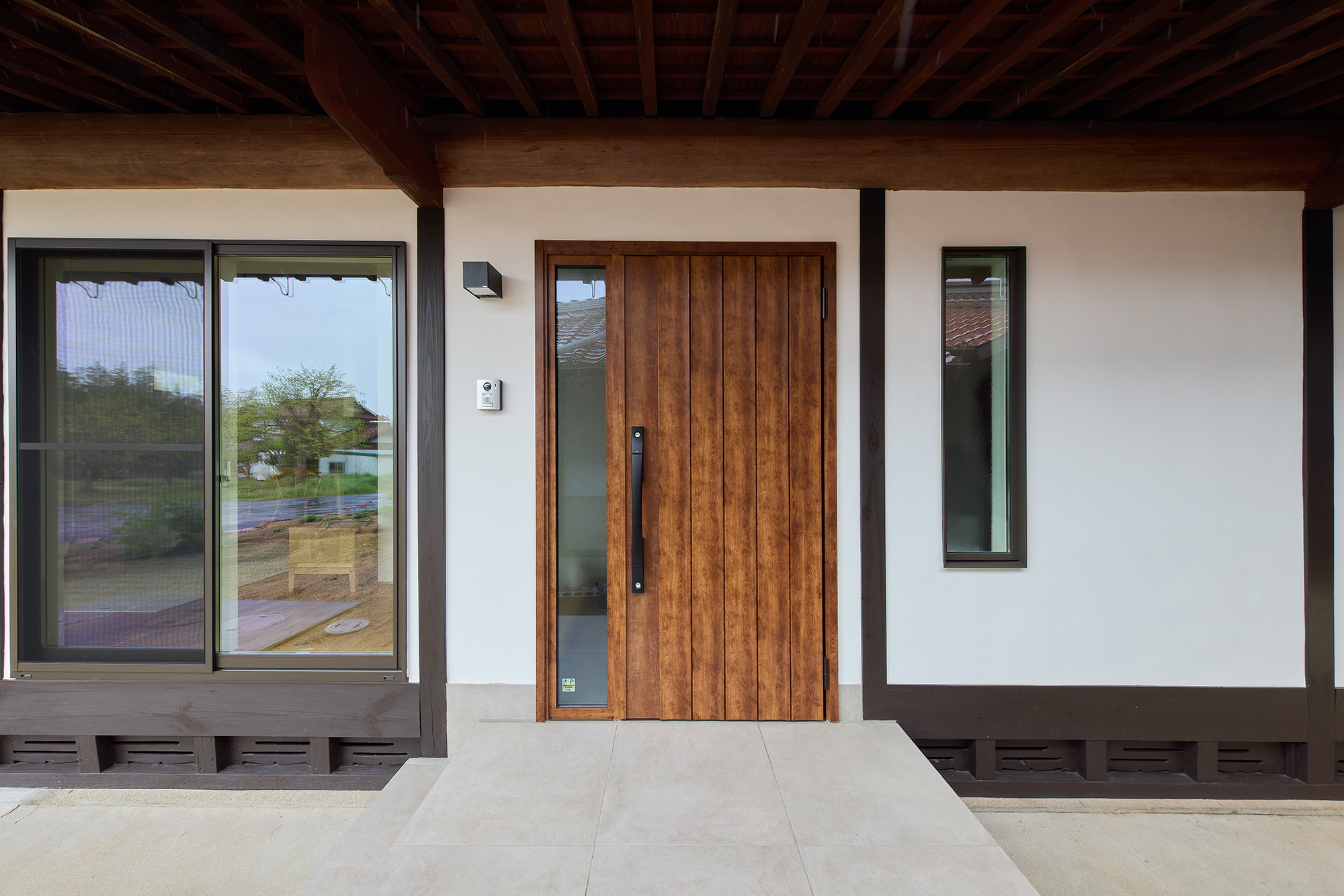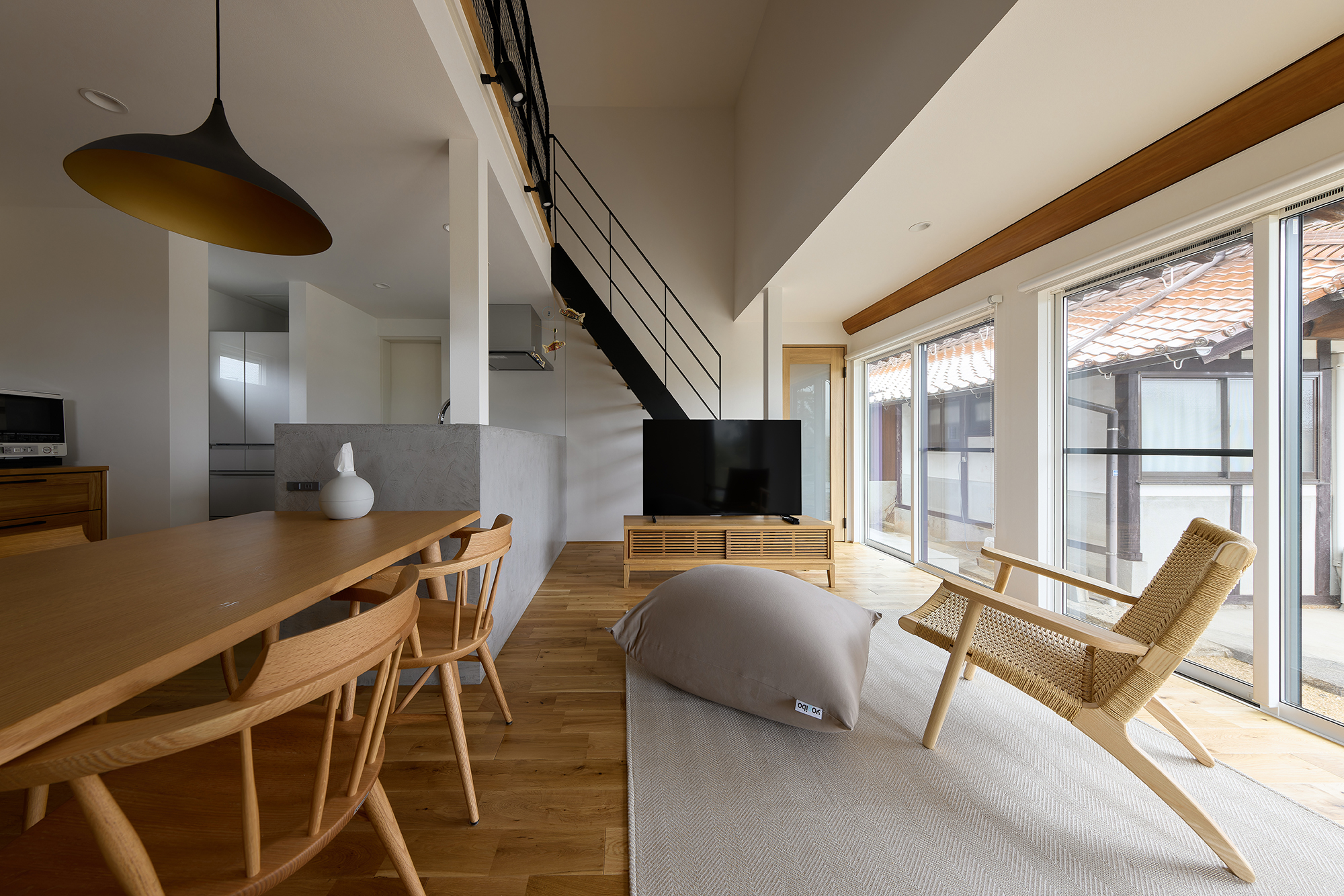 ご実家の離れを、娘さまご家族の新たな住まいとして活用するため、リノベーションのご相談をいただきました。もともとはご祖母様がお住まいだった離れに、新しい家族が快適に暮らせるよう、現代のライフスタイルに合わせた改修を計画しました。今回のリノベーションでは、間取りの見直しに加え、キッチンや洗面といった水まわり設備の一新、内装の全面改修、外壁の漆喰塗り替えを実施。さらに、窓や玄関ドアの交換を行い、断熱・耐震性能の向上も図っています。母屋と離れは廊下でつながっており、浴室は母屋を共有する計画としました。ご家族がゆったりと団らんできる空間を目指し、将来的に2部屋に仕切れる洋室を設け、リビングにはロフトを配置。LDKはキッチンを中心としたレイアウトで、自然と家族が集うあたたかな空間に。さらに離れに専用玄関を新設することで、お互いに気兼ねせず程よい距離感を保ちつつ、母屋とのつながりを大切にした住まいが完成しました。