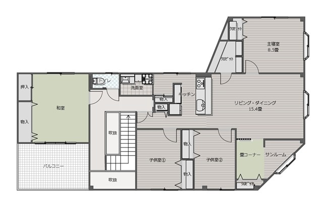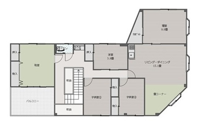 元々二世帯仕様の建物ではなく1階でメインの家事を済ます間取りだったため、2階にはシステムキッチンも洗濯機置き場もなく、2階フロアで子世帯の家族4人が暮らす事のできる間取りではありませんでした。