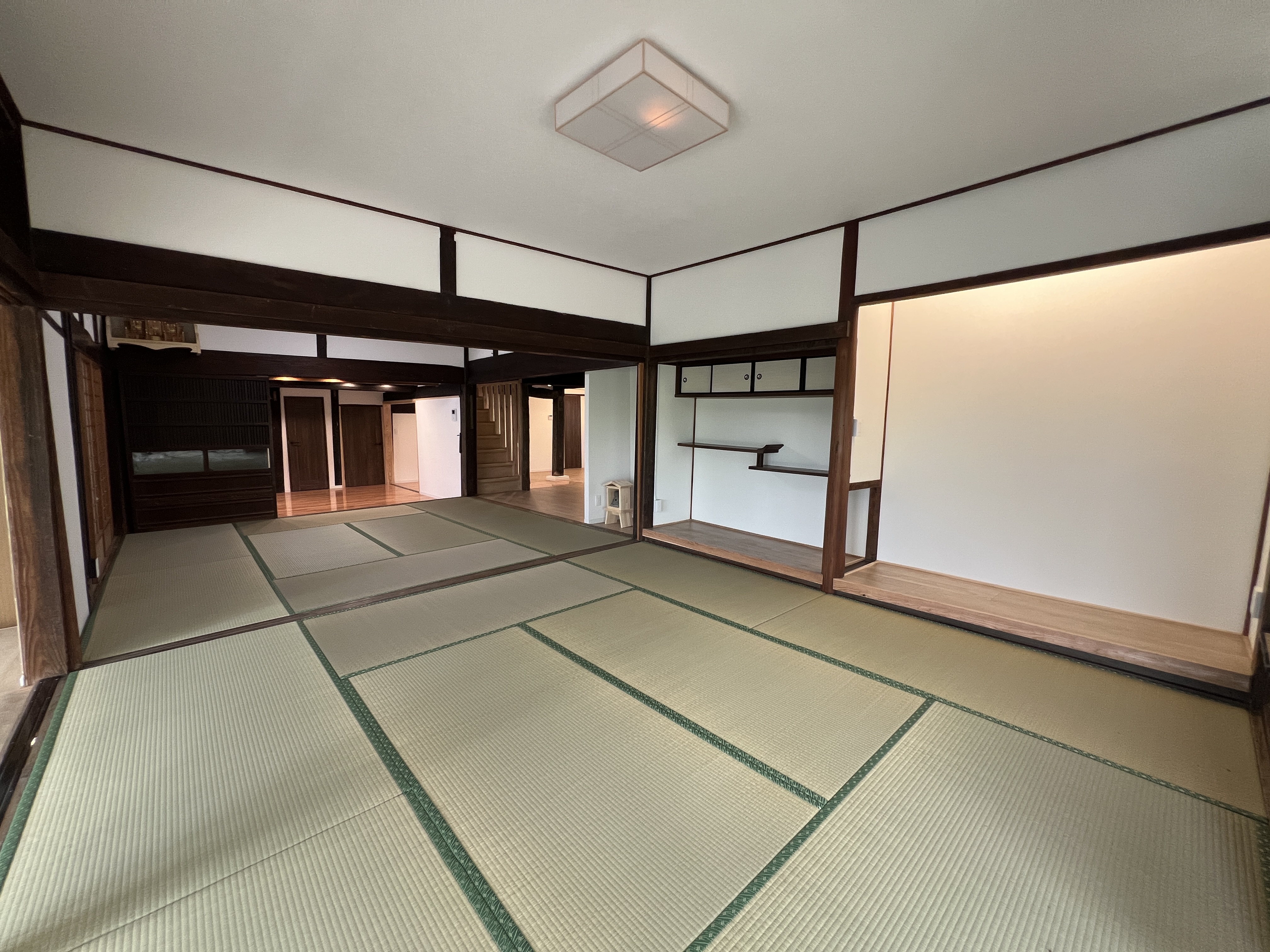 昔ながらの日本家屋で、縁側や続き間、広いリビングなどゆとりある空間が広がる古民家。家屋として十分な広さはあるものの、2階や縁側は物置となっていました。レトロなタイルが残るトイレやお風呂、公団型流し台のキッチンなど、水まわりには不便さも感じられました。