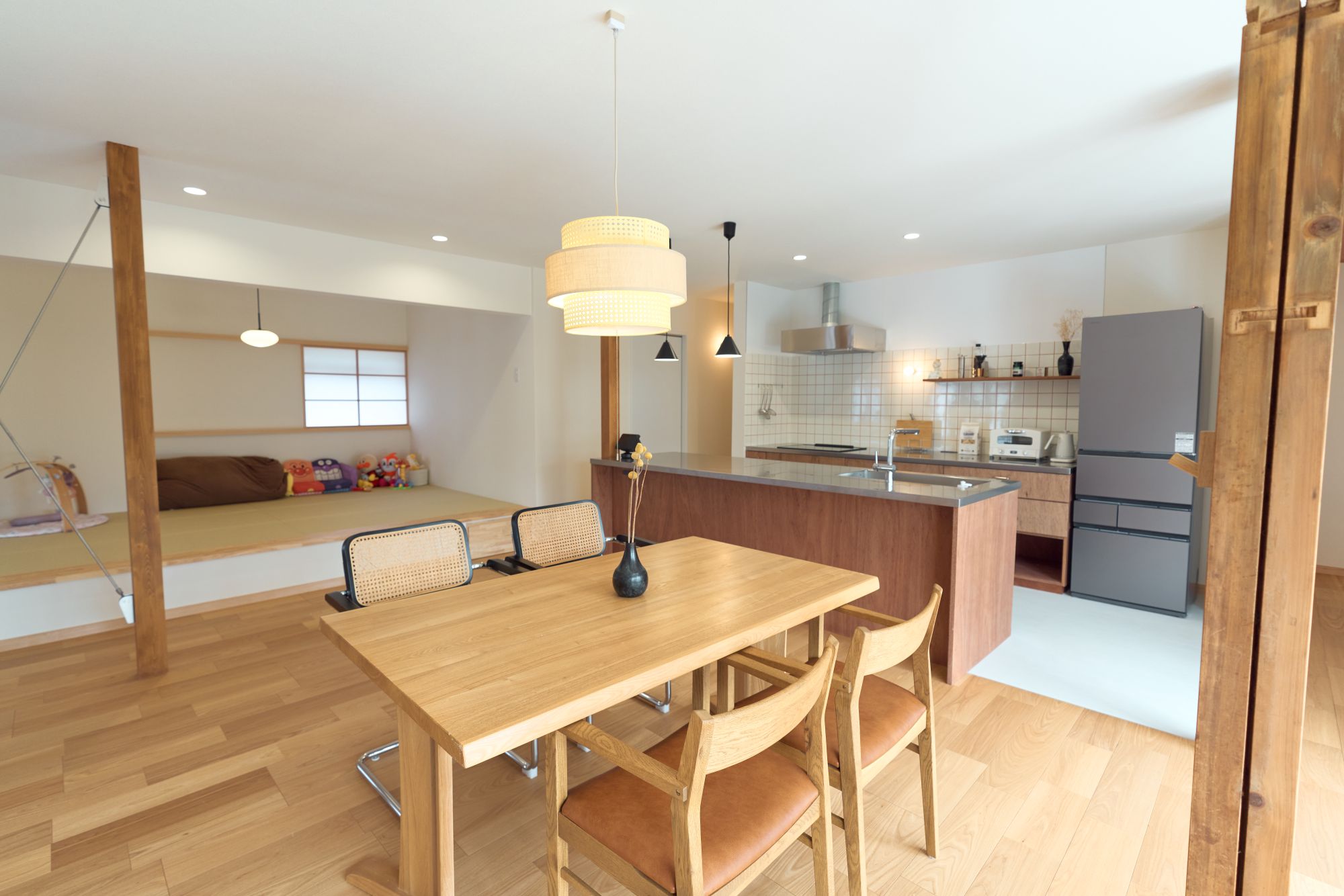 「みんな集まれる空間にしたい。」「物件のテイストも残しながらも元の外観から想像できない間取りや内装にしたい」がというお施主様のご要望にもある通り、たくさんの人に囲まれた暮らしが、印象的なご家族だった。