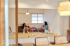 間仕切りの少ない、ひと続きの空間でありながらも、床や天井のレベルの操作、マテリアルを使い分けることで、それぞれの空間の質を変え、様々な居場所となるよう設計を行った。