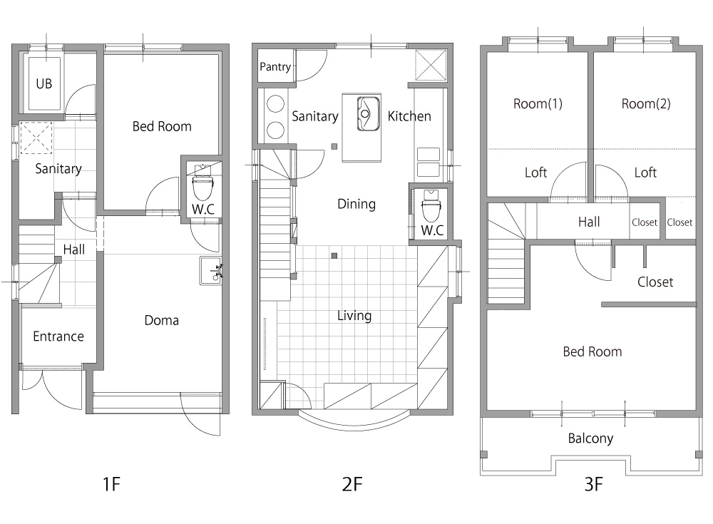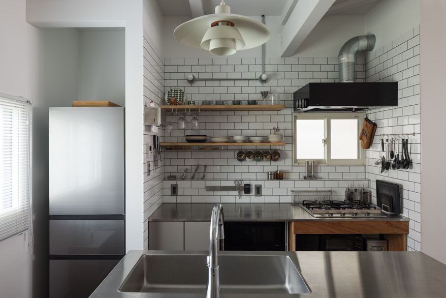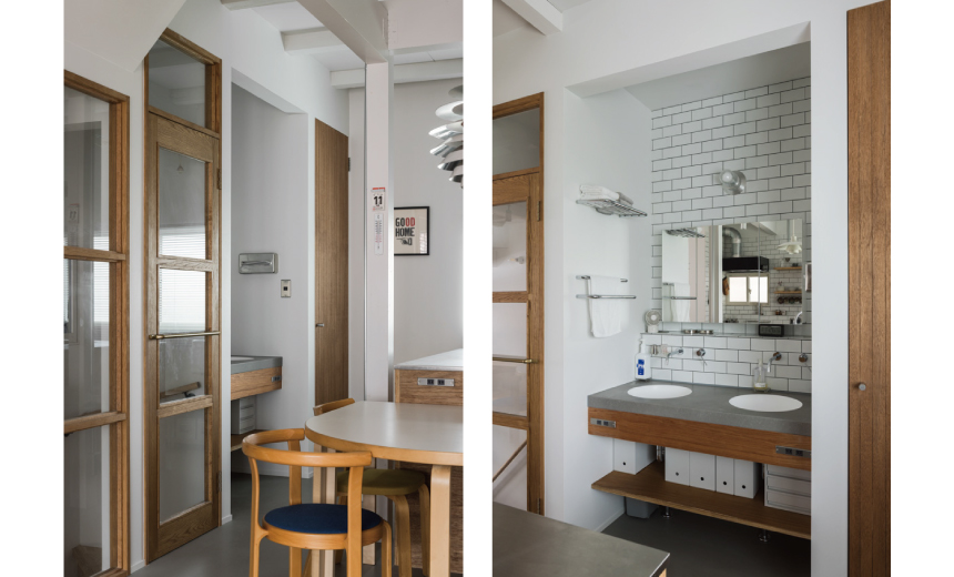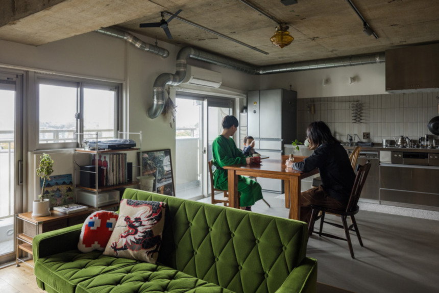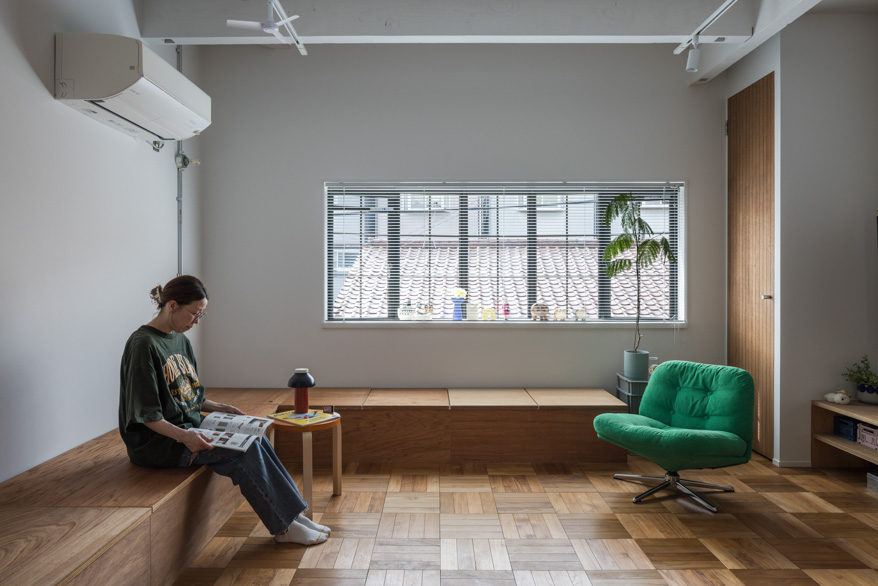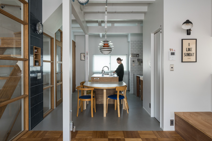 実家を引き継ぎ、3世代で暮らす戸建てリノベーション。ご両親を含めた家族6人が、それぞれの生活リズムを大切にしながら暮らせるよう、工夫を取り入れました。 物件は1階がRC造、2・3階が木造の混構造。木造ながら家の端から端まで視線が抜ける、開放的なワンフロアへと変化しました。 リビングには家族全員が座れる、大きな造作ベンチを設置。奥行き72cmのゆったりサイズで、寝転ぶのにも十分。ベンチ下は収納としても機能し、多人数の暮らしに助かる設計です。 また、身支度が重なる時間帯を考慮し、2階にはトイレと2ボウルの洗面台を配置。 階段横はガラスを取り入れたデザインにし、階段はスケルトン仕様、さらに梁を現しにして天井高を確保。 1階は車庫スペースを見直し、寝室・土間・トイレ・洗面を配置した生活空間にアップデート。 3階の各個室には屋根裏収納としてロフトを設け、高さを活かした使い勝手の良い空間に。 構造を活かした振り幅の広い変化を実現できるのも戸建てリノベならではです。 家族が自然とリビングに集まり、思い思いにくつろげる。そんな、3世代のこれからの暮らしを支える住み継ぐ家が完成しました。