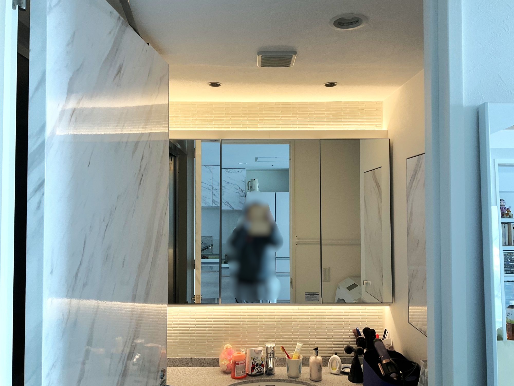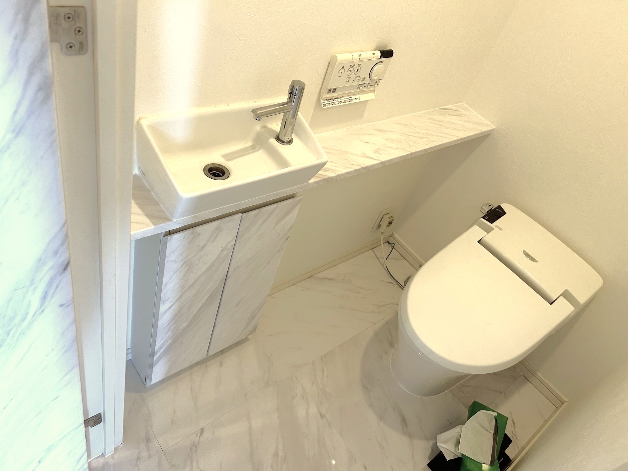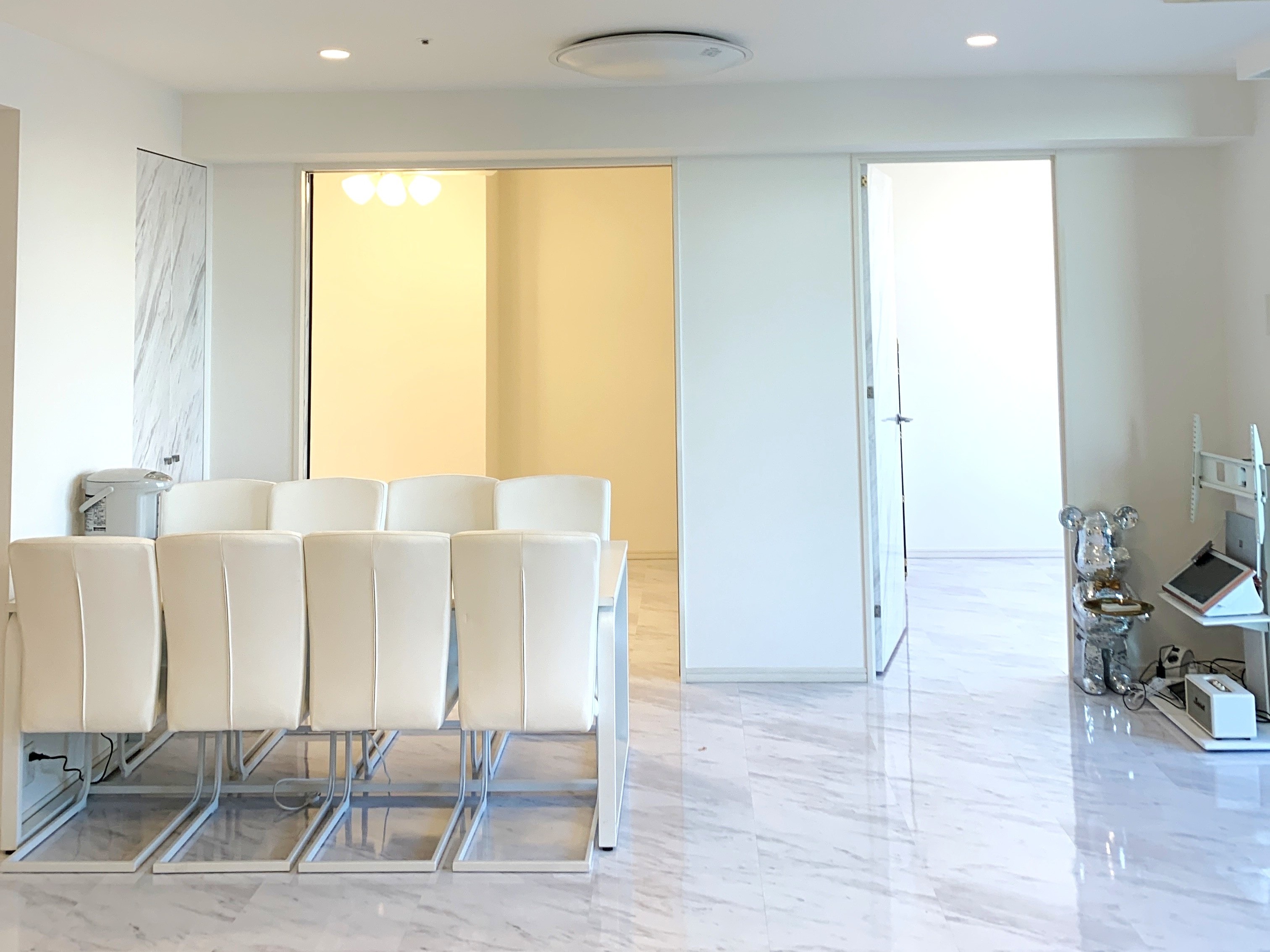 フロアタイルや建具を全面大理石調の質感のものに変更し、統一感のあるラグジュアリーなお住まいになりました。